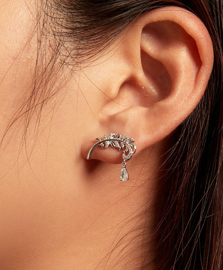大膽地把頭髮撥到一邊、或綁個低馬尾,羽毛自然垂掛在臉側,會有一種隨興中帶點輕奢的味道。頭髮從耳後撥開的瞬間,耳環的立體感就跑出來。